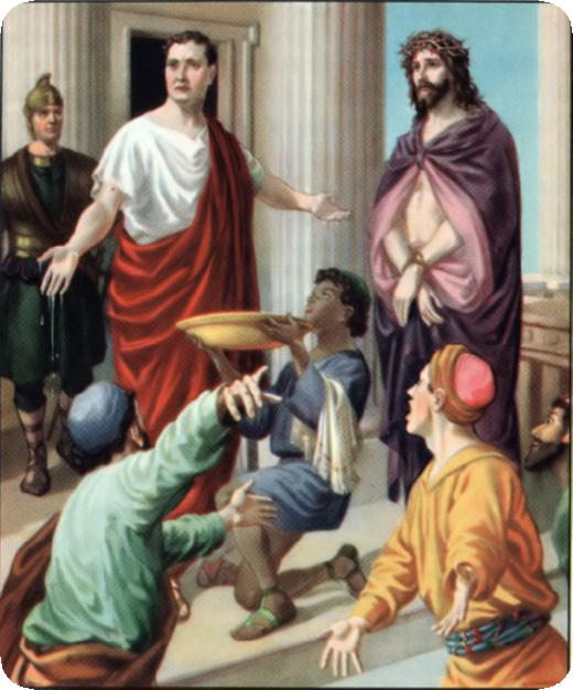 Al presentarse Judas y darle un beso a Jesús en frente de una multitud de gente armada con espadas y palos, Jesús se dejó prender y llevar ante Caifás, quien con los miembros del Sanedrín, le condenaron a muerte por hacerse pasar por el Hijo de Dios